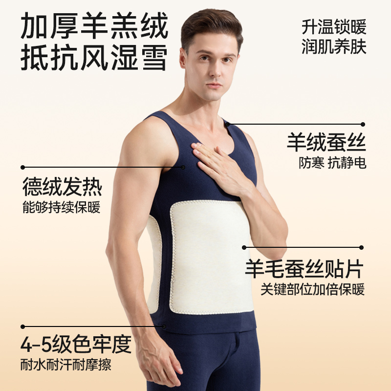 贴片无痕保暖背心男士 德绒发热内衣打底加绒加厚马甲 蚕丝羊绒无袖