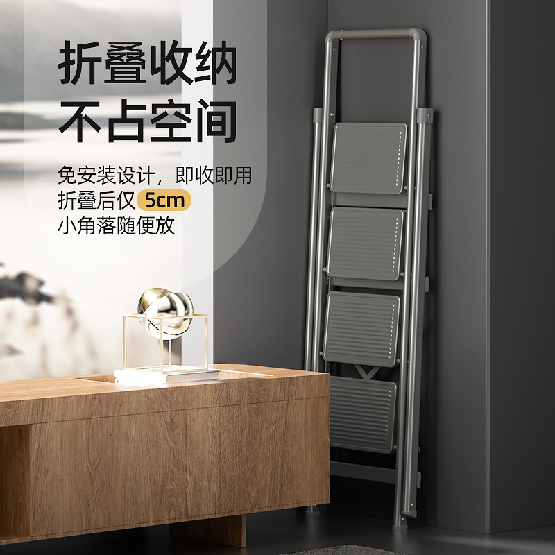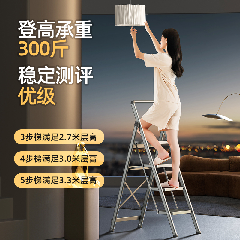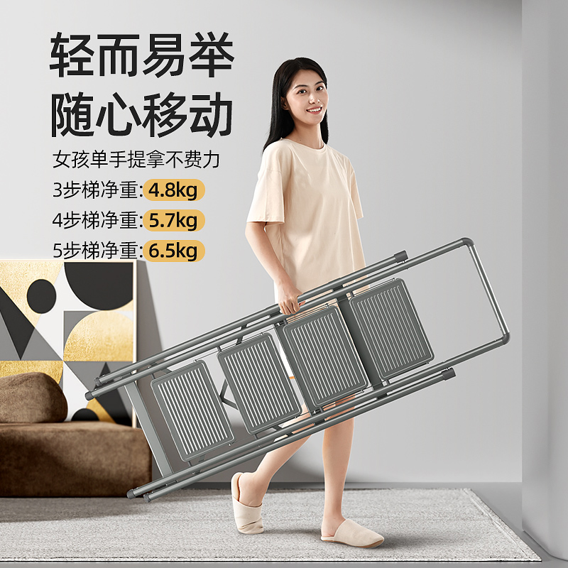 肯泰梯子家用折叠伸缩室内多功能加厚人字梯四五步便携爬梯小楼梯