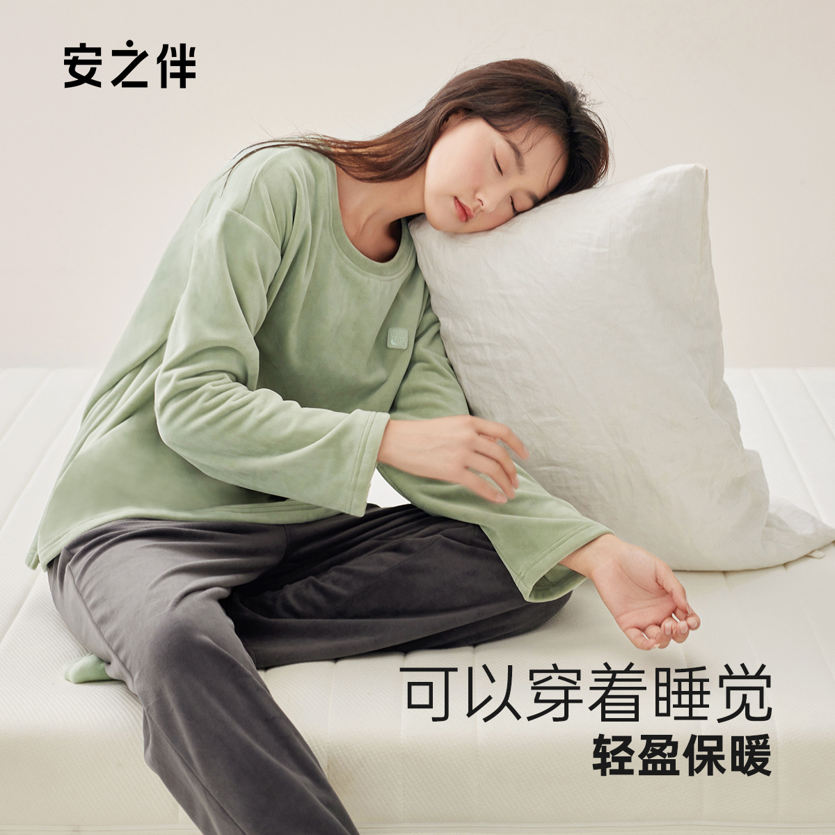 雪花绒锁温保暖可外穿宽松睡衣家居服秋冬天加绒加厚女法兰绒套装