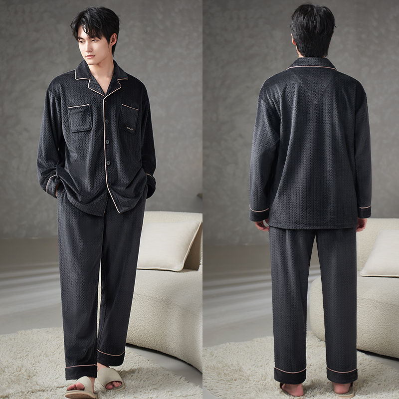 海岛绒家居服套装 加绒加厚保暖珊瑚绒2025新款 睡衣秋冬季 轩靓男士