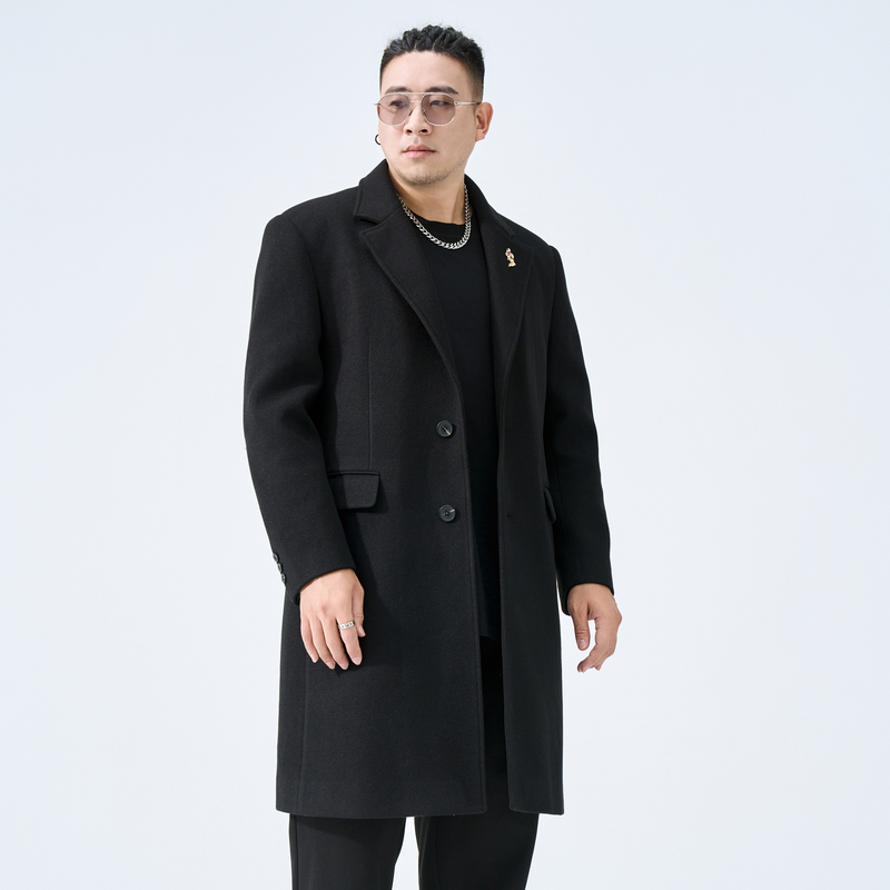 韩版 长款 呢子加厚风衣外套 2025春秋季 V37黑色高级感毛呢大衣男款