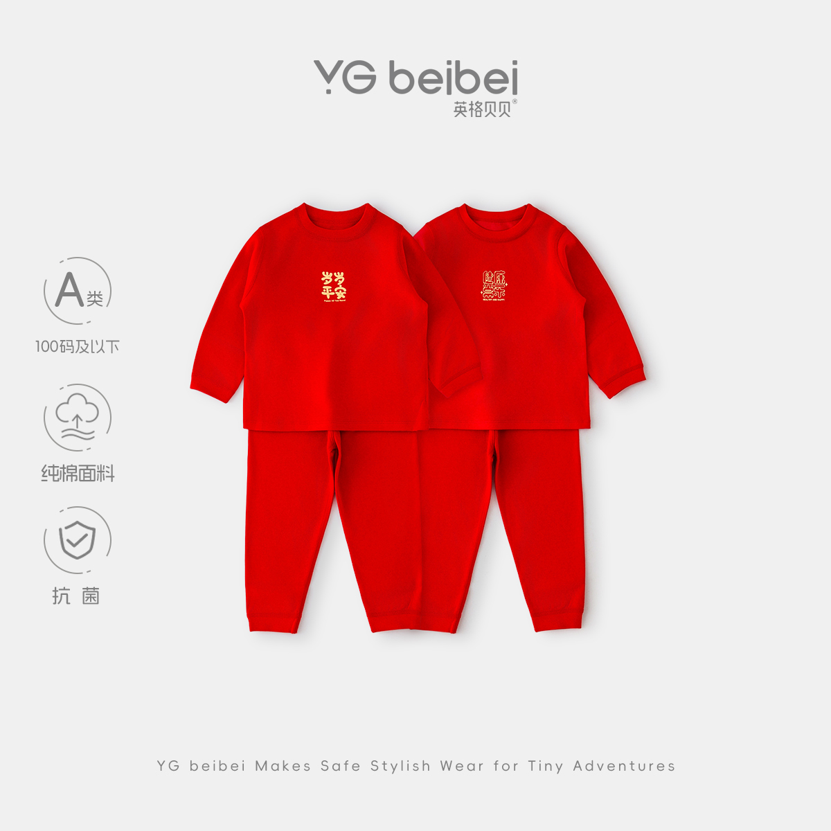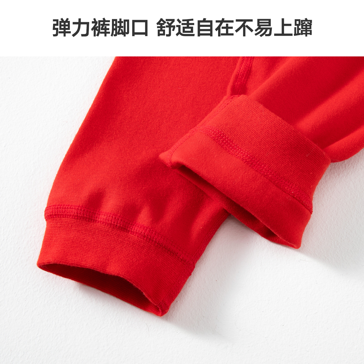 英格贝贝儿童秋衣秋裤 男女童保暖内衣家居服 纯棉抗菌宝宝大红套装