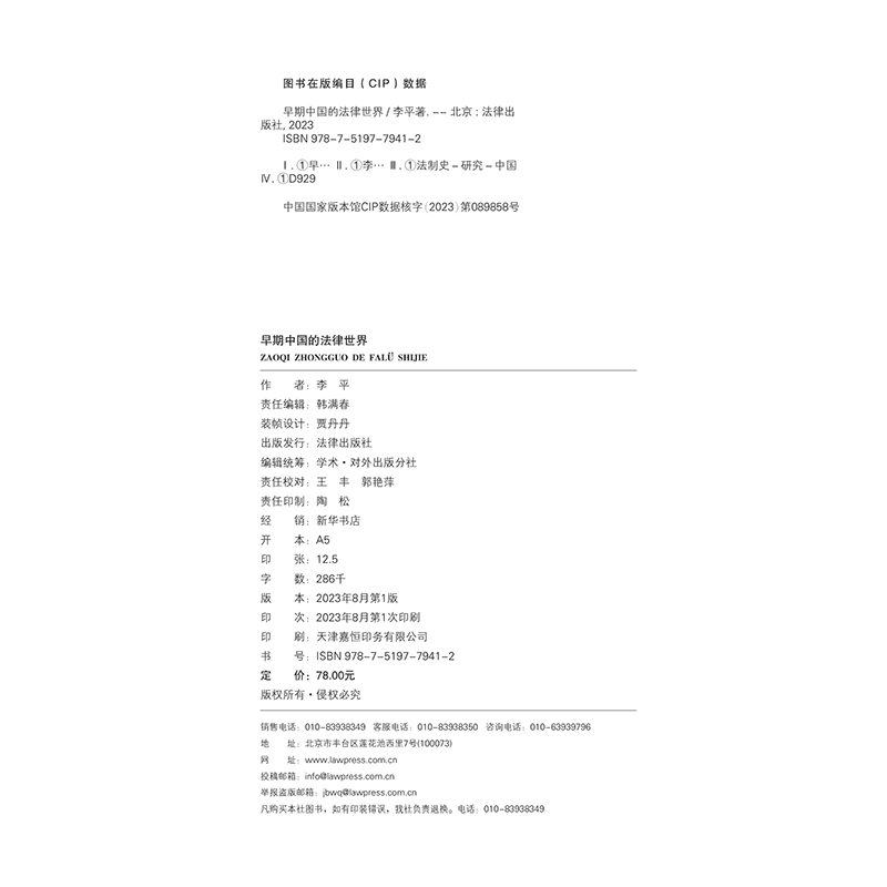 法制史 2023新书 李平 天下 法律思想史 社 法律世界 法律出版 早期中国 9787519779412 精装 法文化 中国法文化