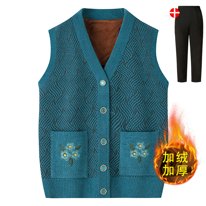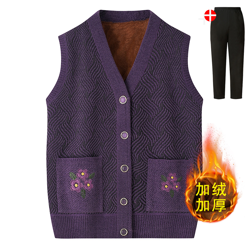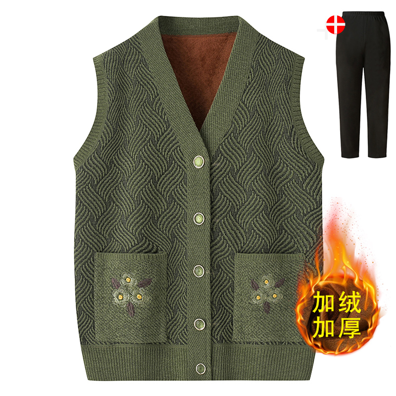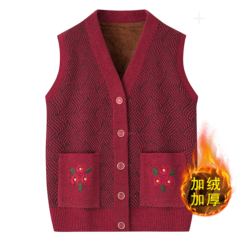 老年人马甲女春秋加绒奶奶毛衣妈妈装 秋冬外套老太太老人衣服 开衫