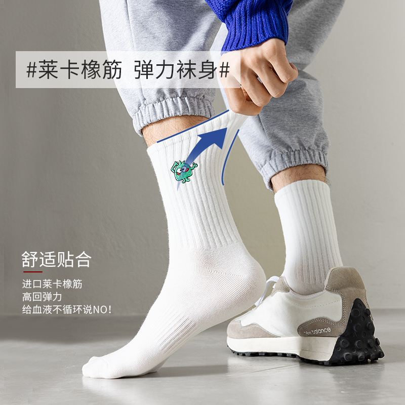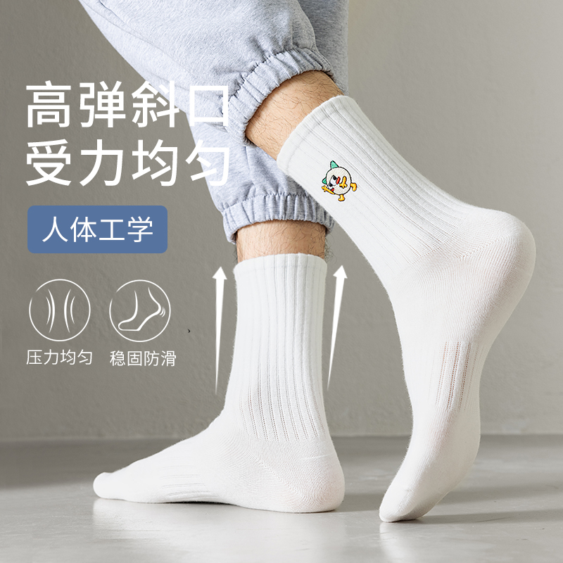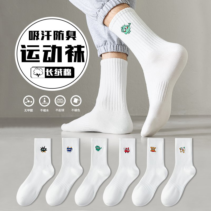 白色袜子男士 春秋100%纯棉防臭运动中筒全棉青少年高中生潮袜学生