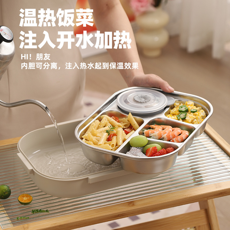 宇太 304不锈钢饭盒学生成人分格餐盒分隔饭盒保温便当盒配密封盖