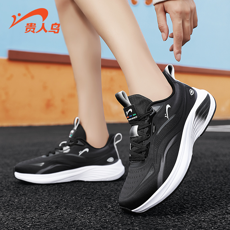 新款 黑色情侣鞋 轻便软底跑鞋 贵人鸟运动鞋 休闲跑步鞋 秋季 男士 女鞋