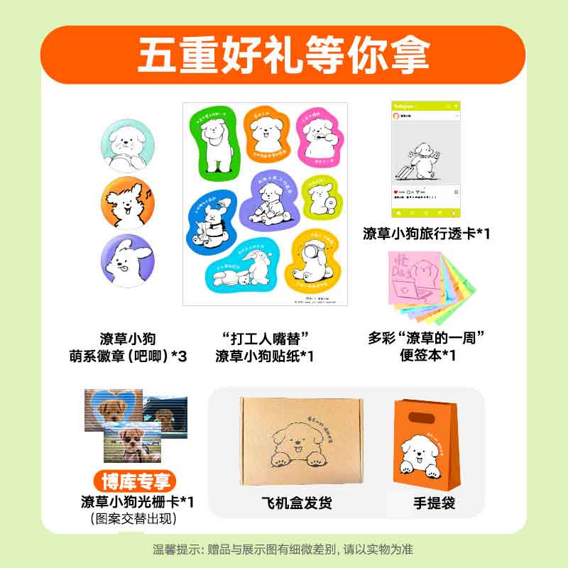 亲爱 潦草小狗拯救世界 线条小狗漫画治愈绘本 3层效果光栅卡