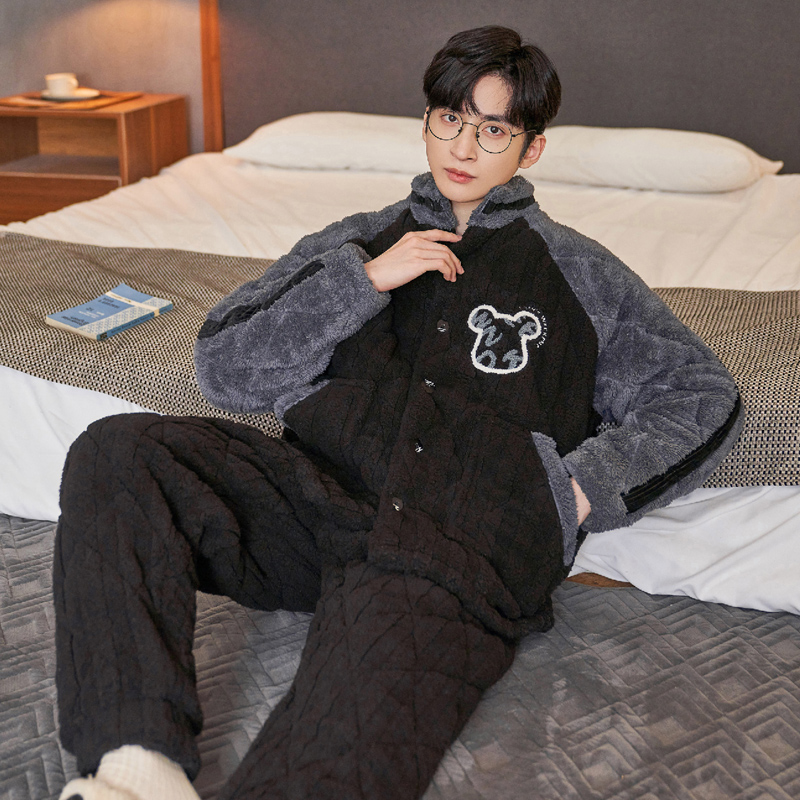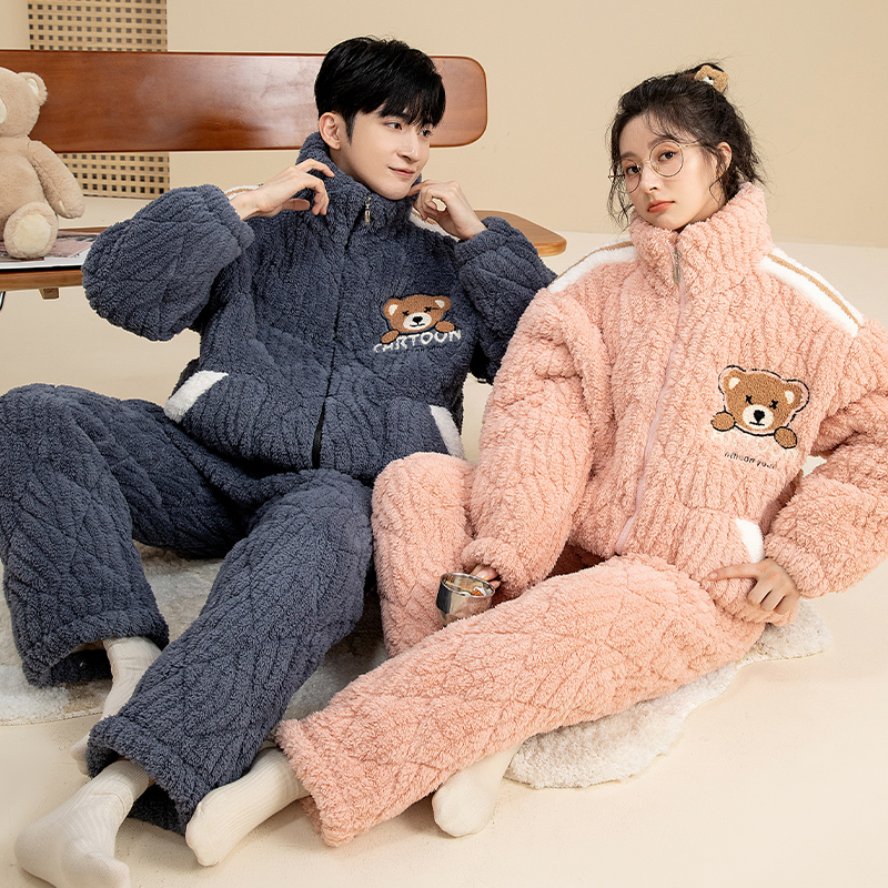 家居服三层加厚夹棉袄冬款 男女式 秋冬季 珊瑚绒情侣睡衣加肥加大码