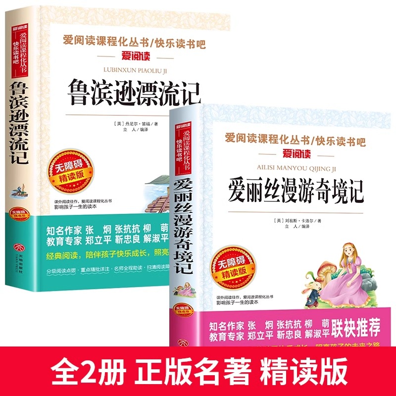 全套2册鲁滨逊漂流记原著完整版 六年级下册必读课外书快乐读书吧爱丽丝漫游奇境记小学生课外阅读书籍鲁滨孙漂流记6下册梦游仙境