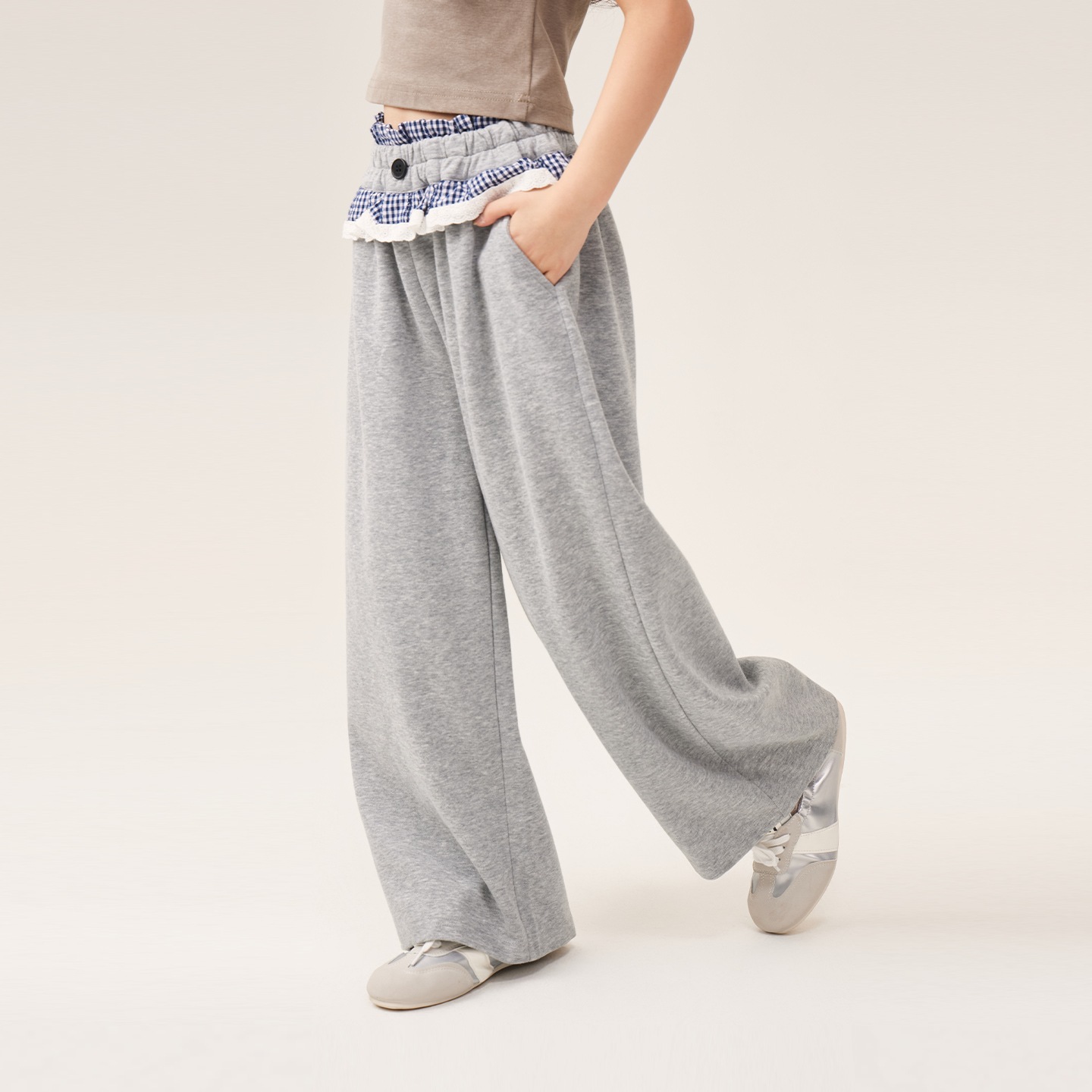 加绒街舞穿搭褶皱宽松休闲长裤 女秋冬季 子 灰色运动卫裤 自然涩美式