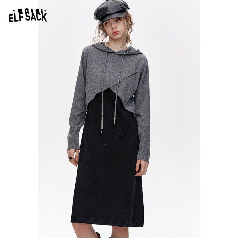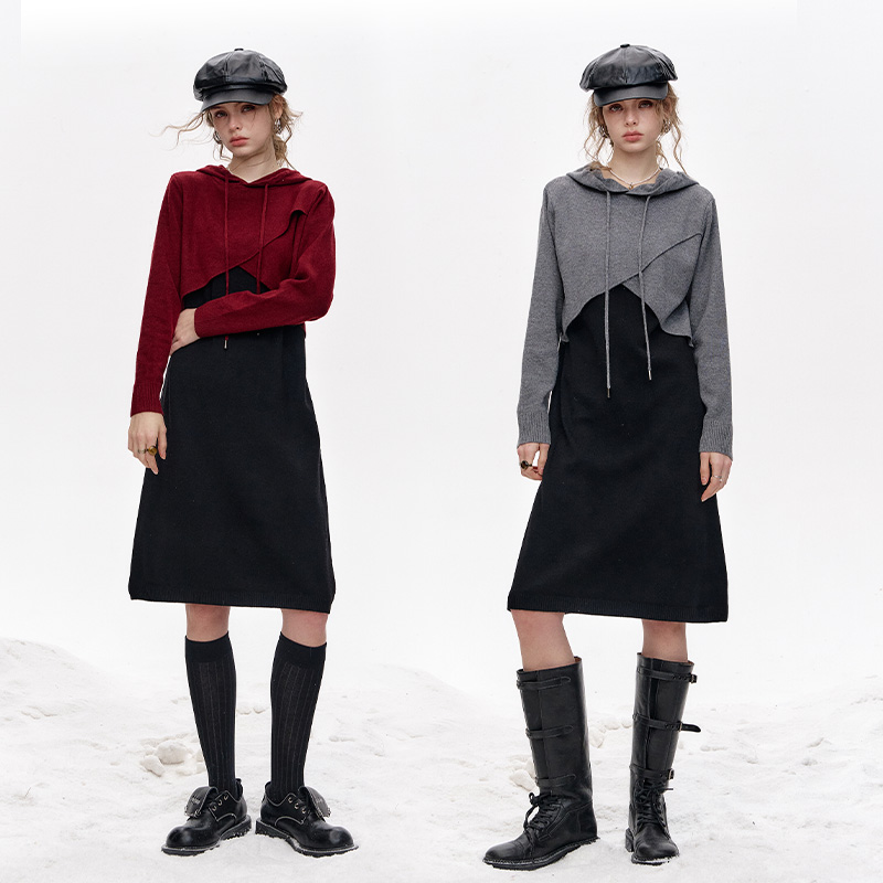 针织拼接轻纱假两件双层领口复古连衣裙 新款 Cello Sonata25年秋