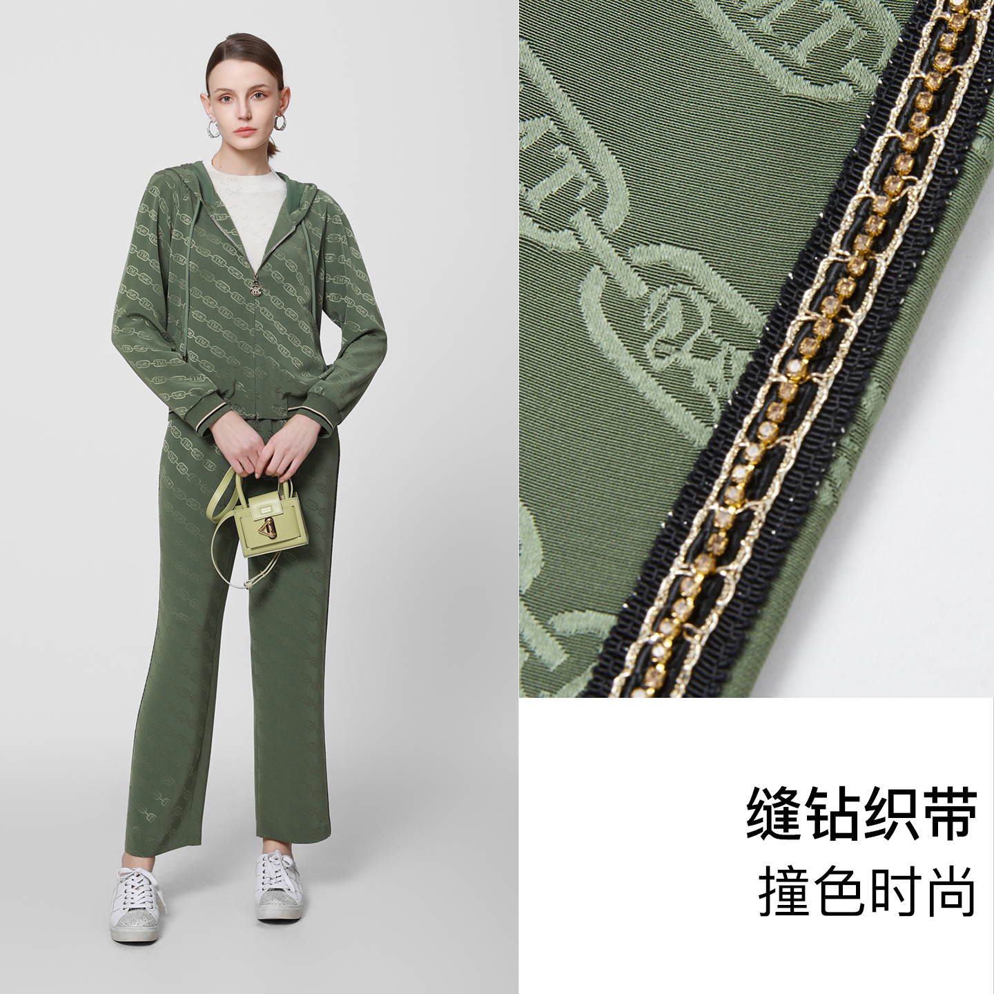 女裤 专柜正品 运动时尚 子长裤 马天奴2025秋冬新绿色提花直筒休闲裤