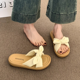 法式 配裙子厚底沙滩凉鞋 仙女蝴蝶结一字拖 女夏外穿2025新款 凉拖鞋