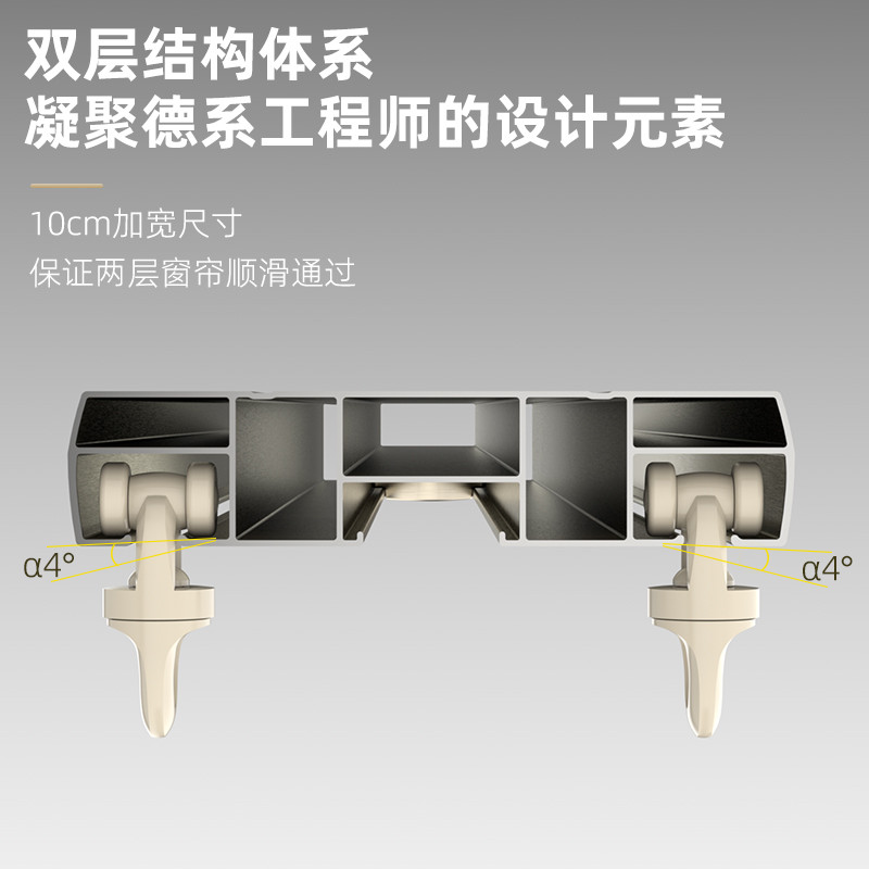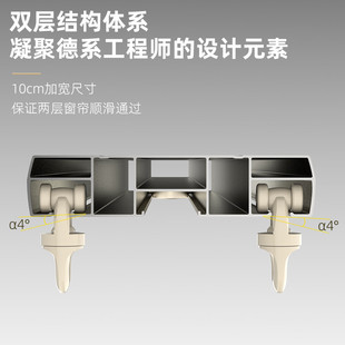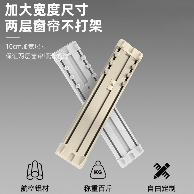 奢帘客双层窗帘轨道顶装 窗帘盒双轨静音窗帘杆导轨滑轨滑道一体式