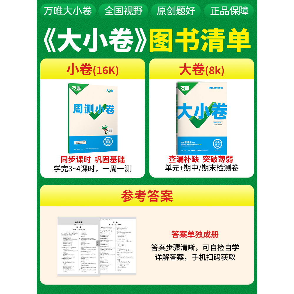冀教版 北师版 华师版 湘教版 试卷原创题 2026新版 全一册初中同步试卷巩固基础综合检测单元 万唯大小卷9年级数学人教版