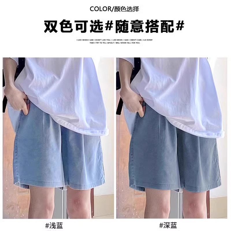 高腰宽松显瘦学生百搭阔腿五分休闲中裤 薄款 软 女夏季 天丝牛仔短裤