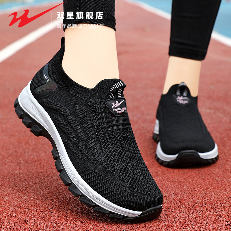 透气舒适软底防滑一脚蹬中老年老人健步爸爸鞋 秋季 妈妈鞋 双星女鞋