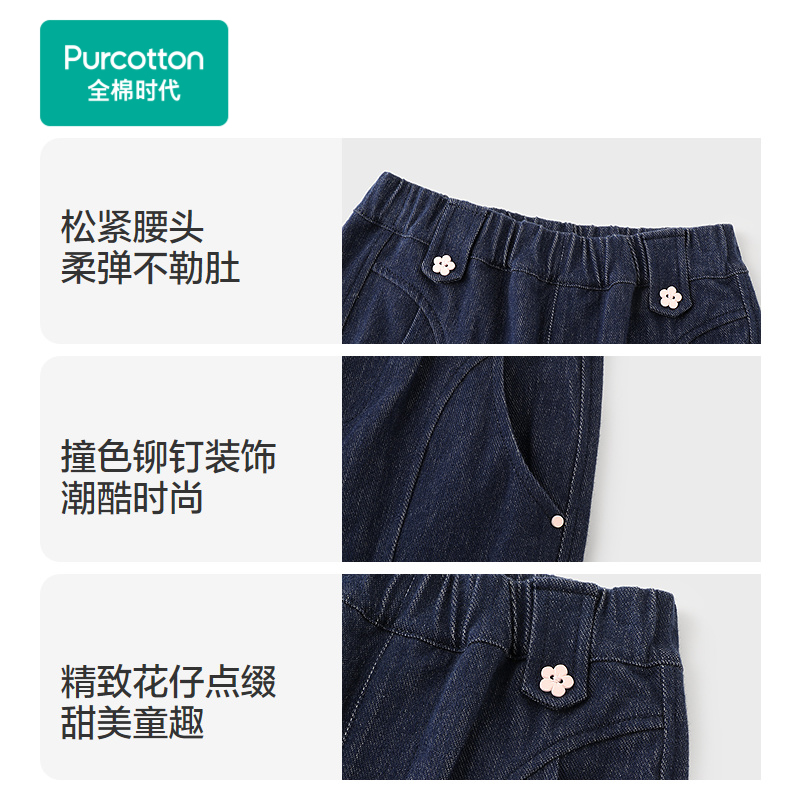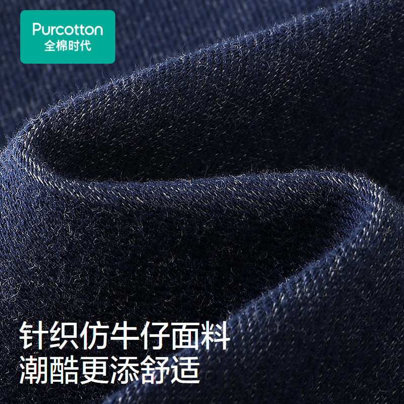 宽松柔软高弹秋冬新款 直筒裤 子女童针织仿牛仔长裤 全棉时代儿童裤