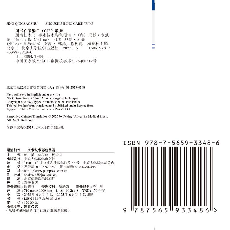 徐树建 杨振林 主译 颈清扫术 北京大学医学出版 韩勇 精装 社9787565933486 手术技术彩色图谱