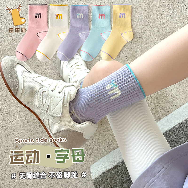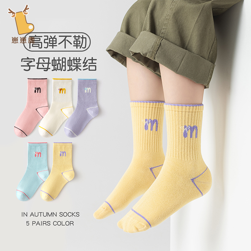 女童运动袜子春秋天纯棉儿童潮袜秋季 女孩大童少女百搭学生中筒袜