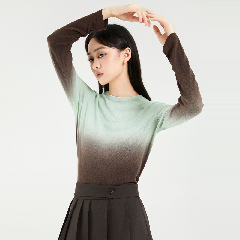 打底衫 傲丝度莱赛尔针织衫 圆领长袖 新款 丁达尔渐变上衣 女2025秋季