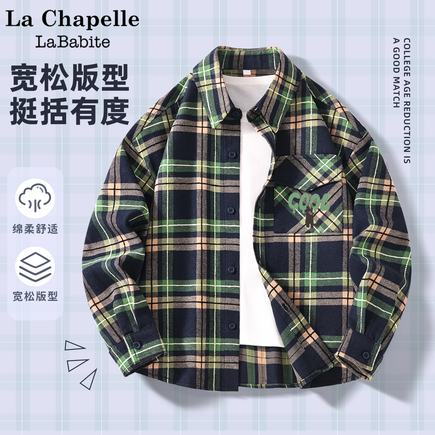 加绒加厚百搭高级感痞帅初中生 外套男春秋新款 青少年牛仔长袖 衬衫