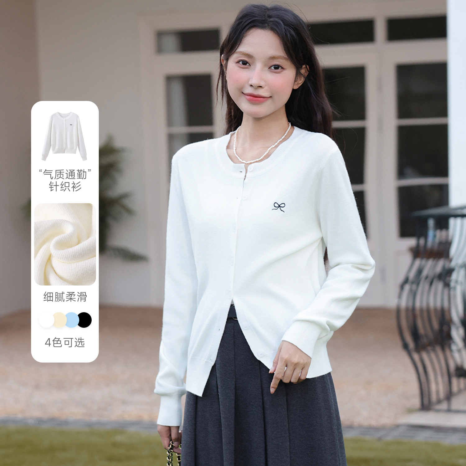 小个子穿搭修身 新款 显瘦外套N 秋季 班尼路S&K系列排扣圆领针织开衫