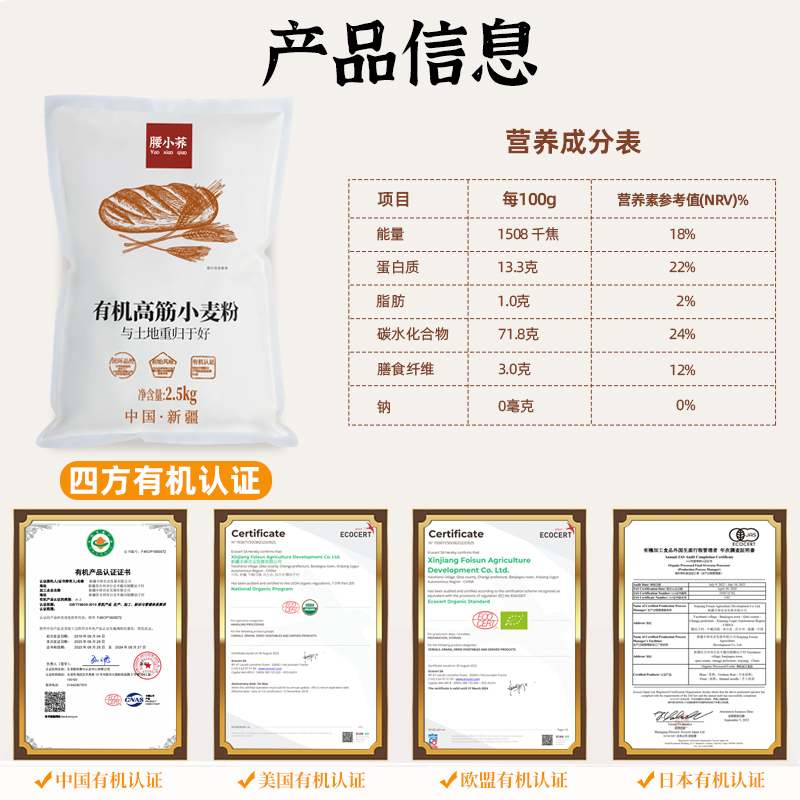 腰小荞新疆奇台有机高筋小麦粉2.5kg面包粉烘焙吐司欧包家用粉