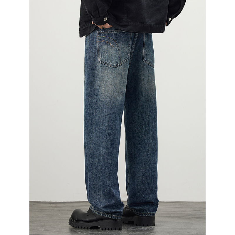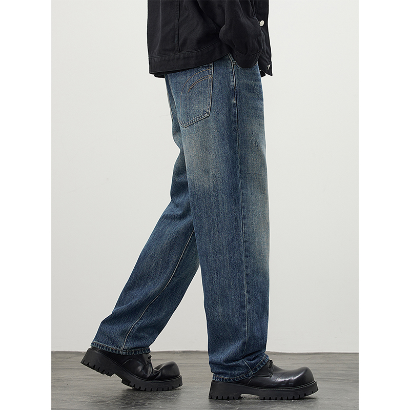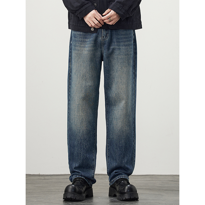 男士 Kuvine秋季 牛仔裤 cleanfit怀旧复古宽松直筒简约大码 潮流美式