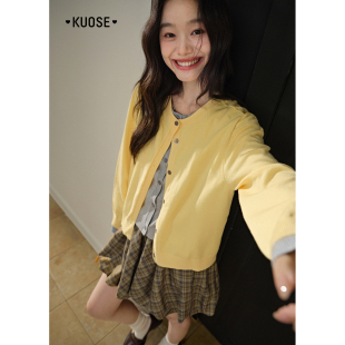 女毛衣宽松上衣 外套25早秋穿搭新款 阔色粉色撞色假两件针织衫 开衫