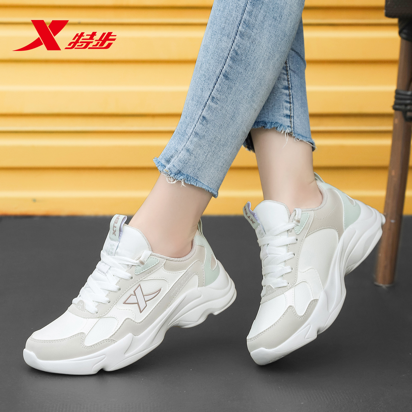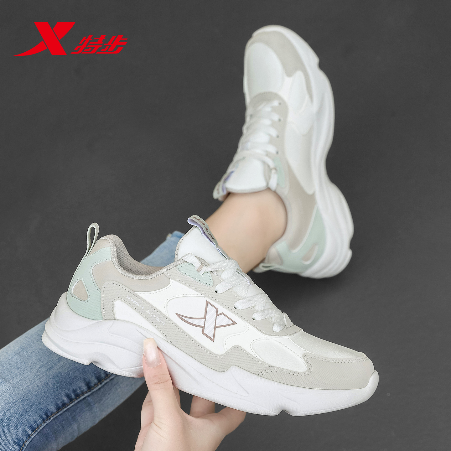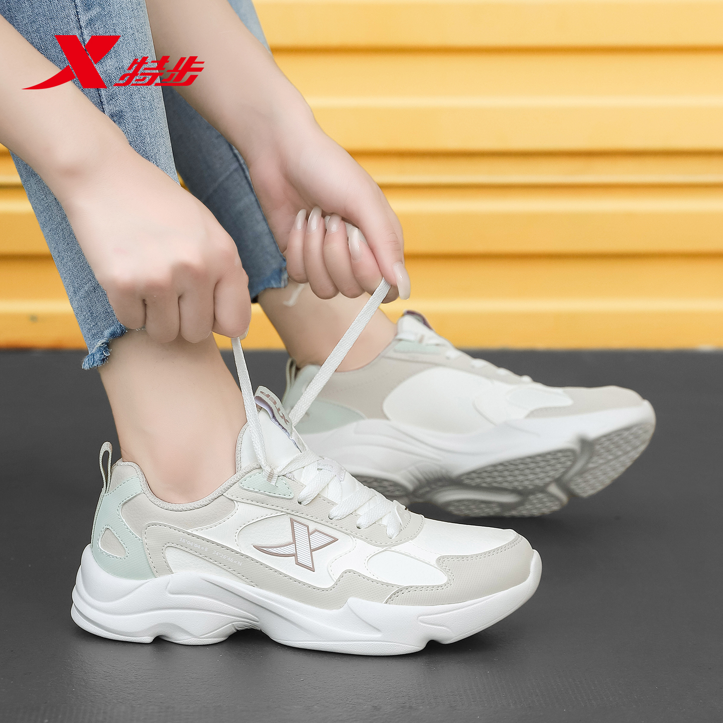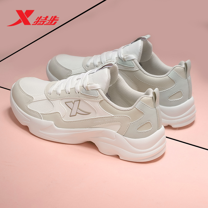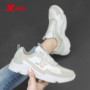 老爹鞋 新款 子皮面休闲鞋 官方旗舰正品 女 特步女鞋 轻便运动鞋 跑步鞋