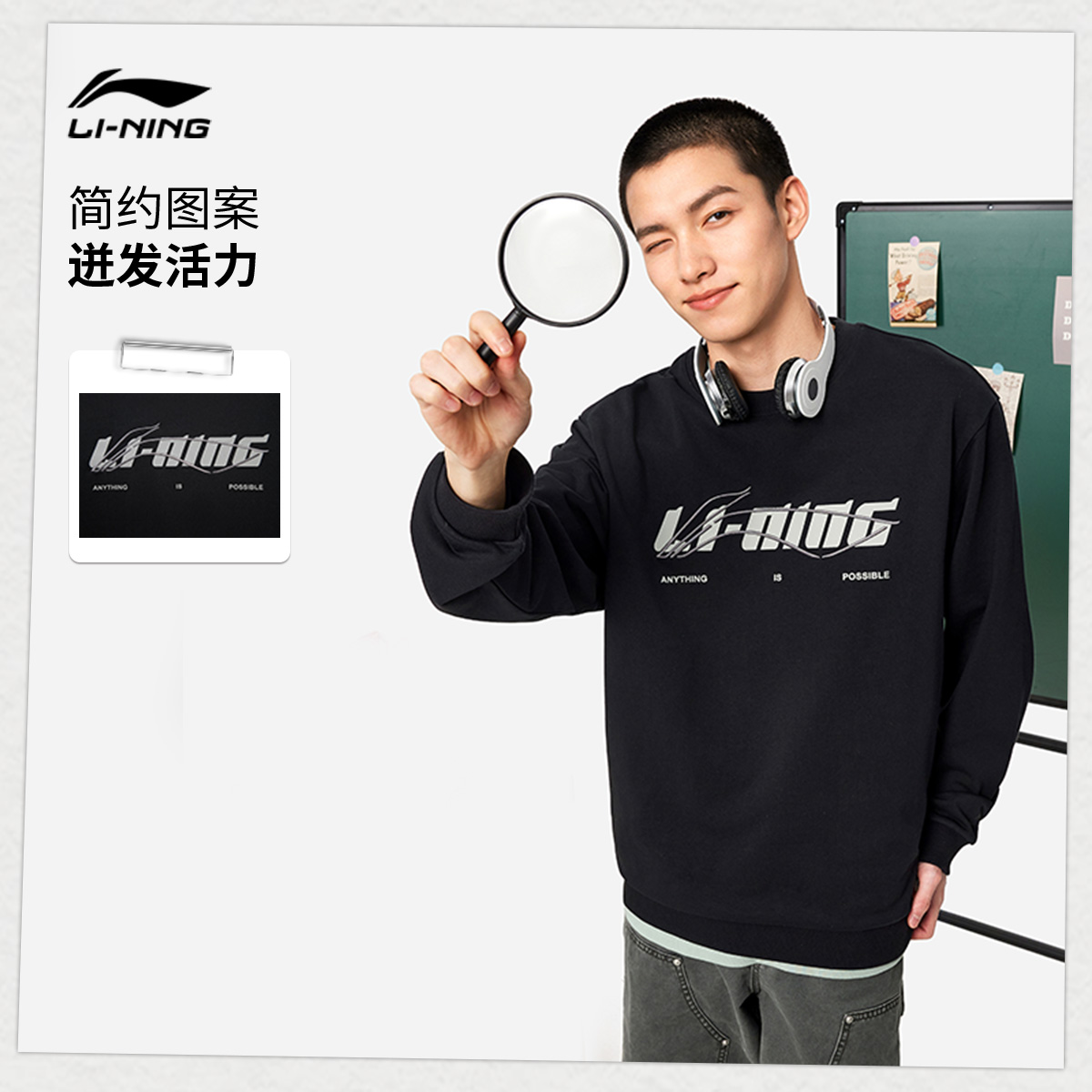 情侣长袖 李宁卫衣女秋冬新款 圆领加绒加厚运动上衣男 双11预售
