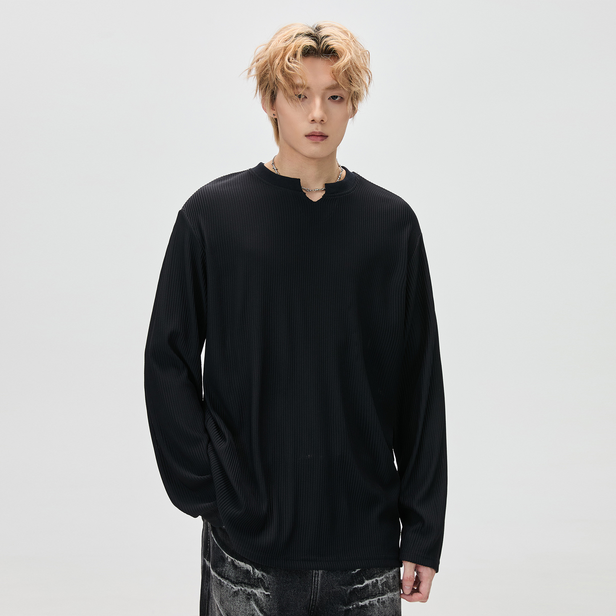 黑色V领长袖 cleanfit宽松内搭打底衫 t恤男2025秋季 美式 新款 ALLIN