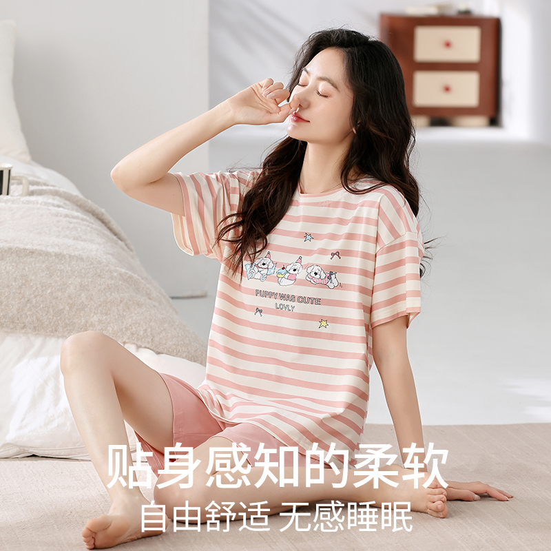 夏季 短裤 2025新款 春秋夏款 睡衣女款 少女士家居服套装 夏天纯棉短袖