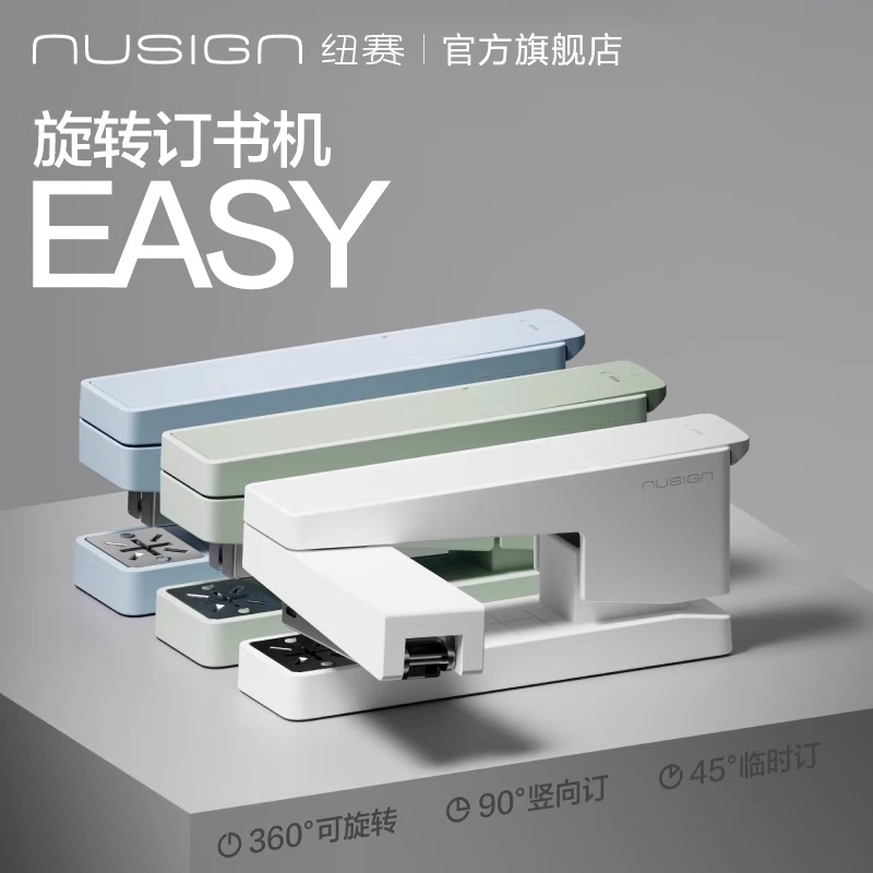 得力可旋转订书机大号学生用高颜值订书器订送起钉器办公用重型加厚多功能小号省力订厚书标准订中缝装 订用品