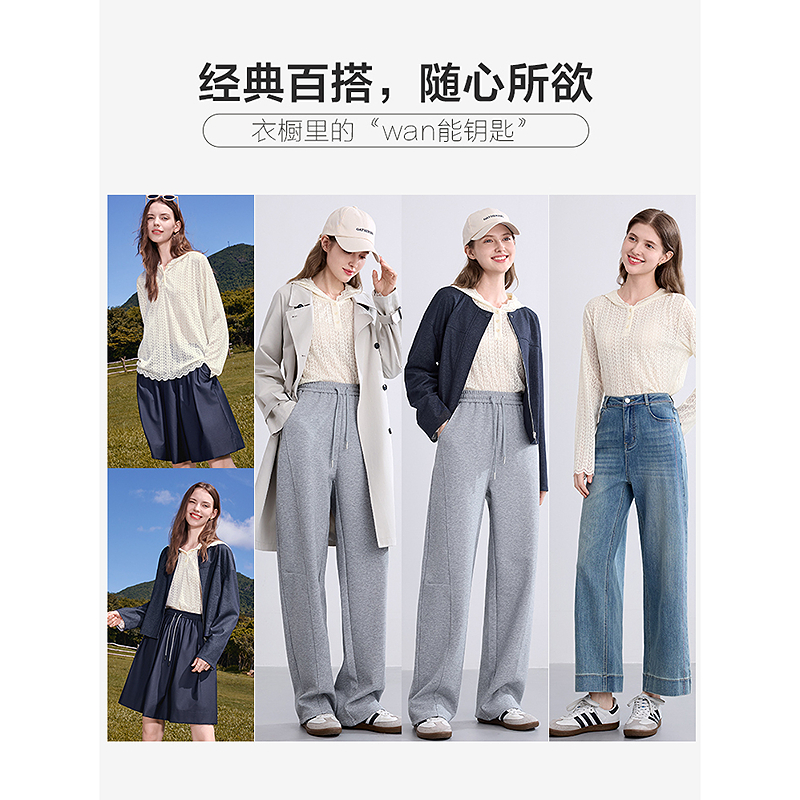 长袖 新款 体恤上衣 蕾丝鱼骨纹连帽T恤女2025年秋季 betu百图法式