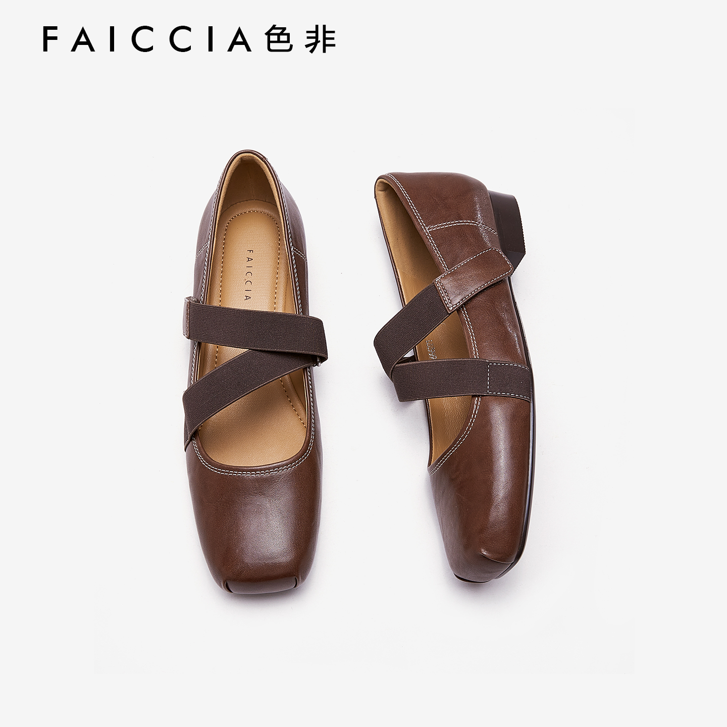 低跟浅口真皮玛丽珍鞋 色非复古风方头交叉带芭蕾舞单鞋 2025秋新款