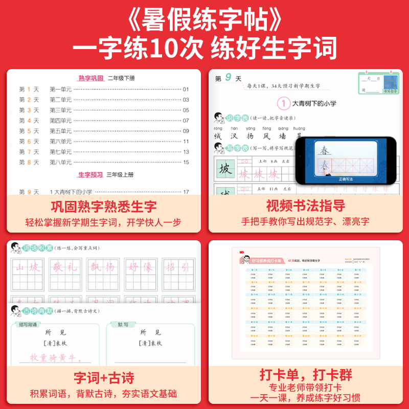 一本 暑假阅读口算练字帖42天打卡陪伴配视频讲解 暑假专项训练