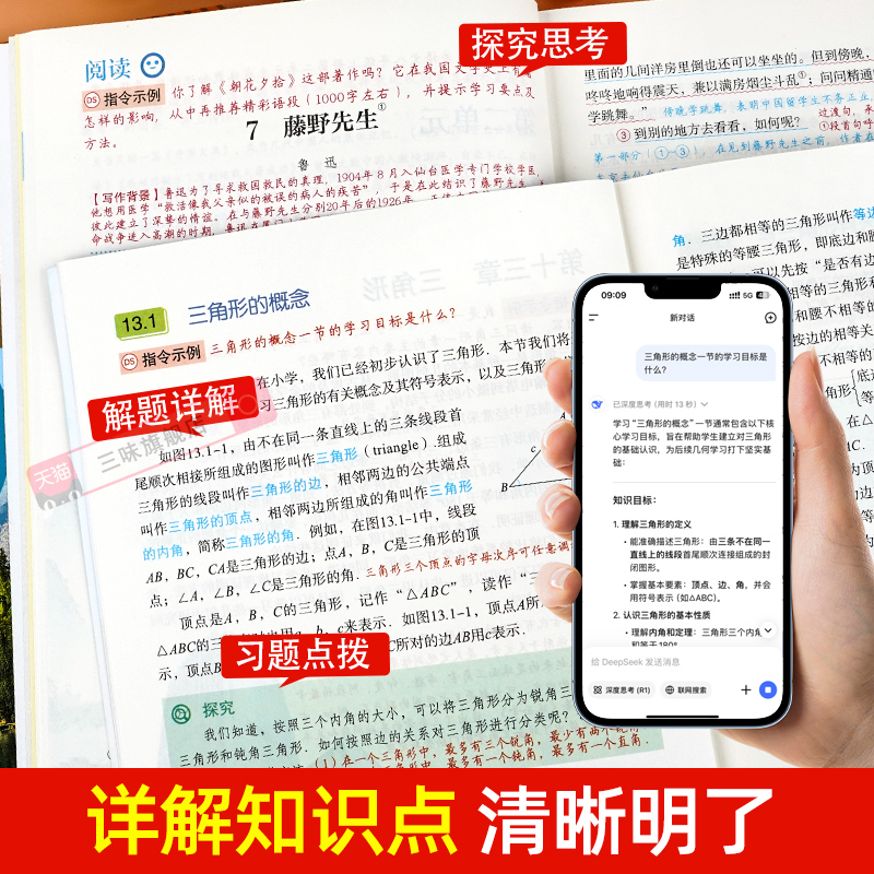 2025新版 含DeepSeek助教八上初二预习教辅资料8上学霸课堂笔记 初中教材讲解全解八年级上册语文数学英语教材书全套课本同步人教版