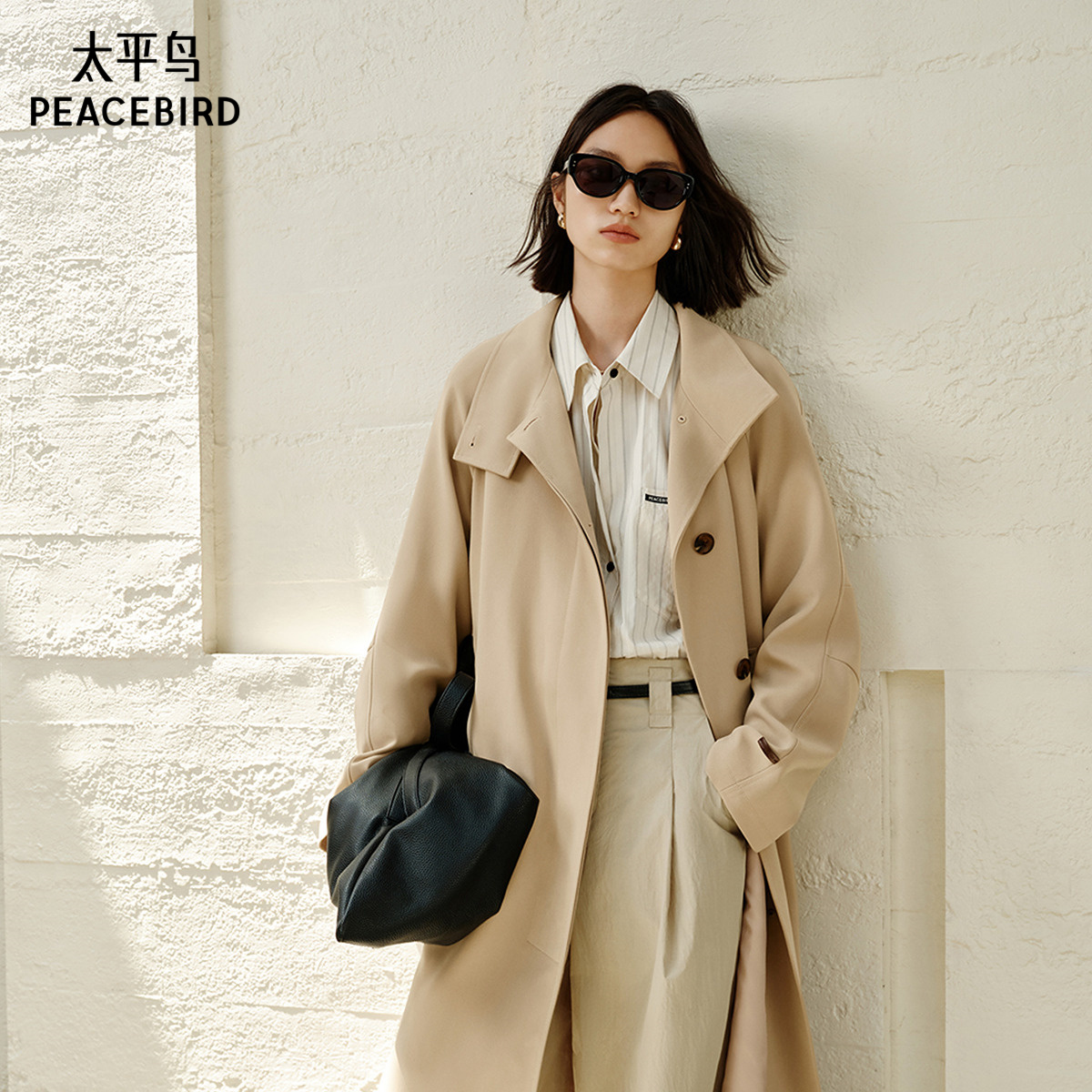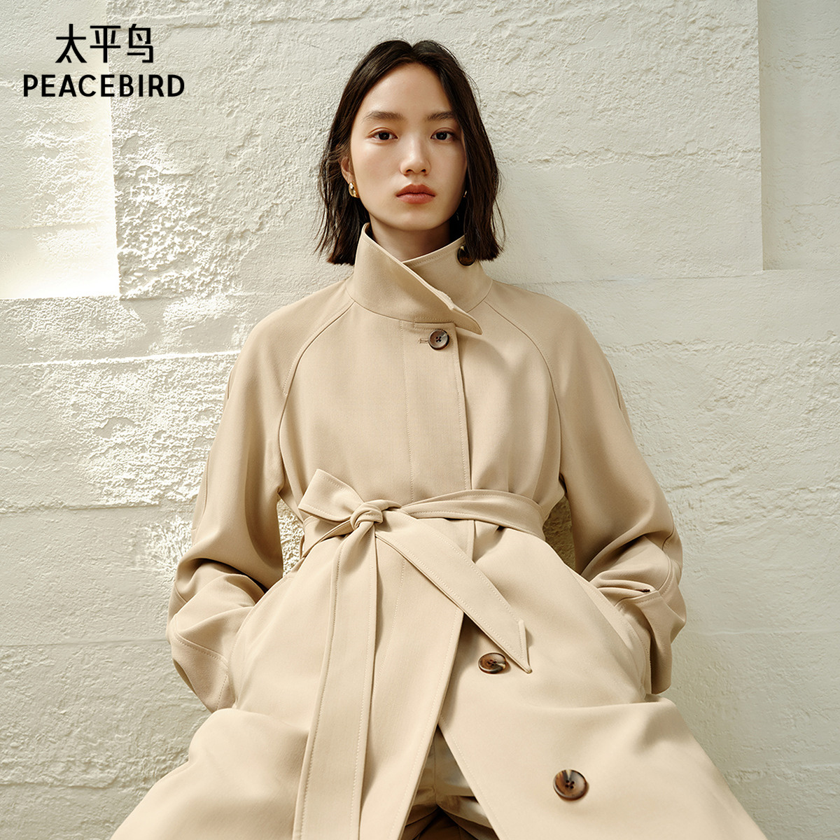 女装 LILY25秋新款 雅丹风长绒棉通勤卡其色风衣外套 天猫预售