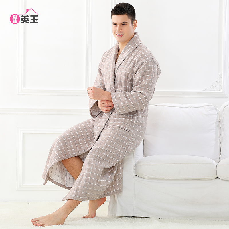 浴袍全棉加长款 翻领纱布男女浴衣情侣纯棉睡袍柔软吸水速干不掉毛