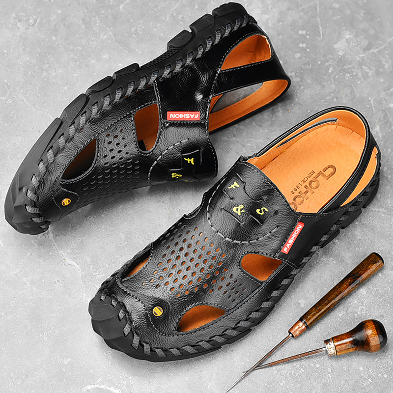 男款 中年凉拖鞋 2025防滑两用真皮休闲沙滩鞋 新款 开车 软底夏季 凉鞋