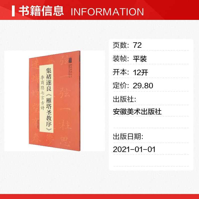 雁塔圣教序 李商隐七言古诗 安徽美术出版 新华文轩 社 新华书店旗舰店文轩官网 集褚遂良 书籍 正版