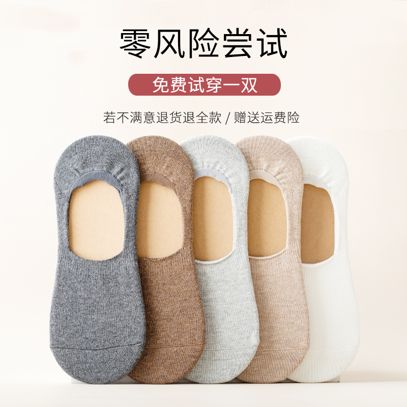 纯棉船袜子女春秋季 透气隐形袜无骨 不掉跟硅胶防滑短袜浅口夏薄款