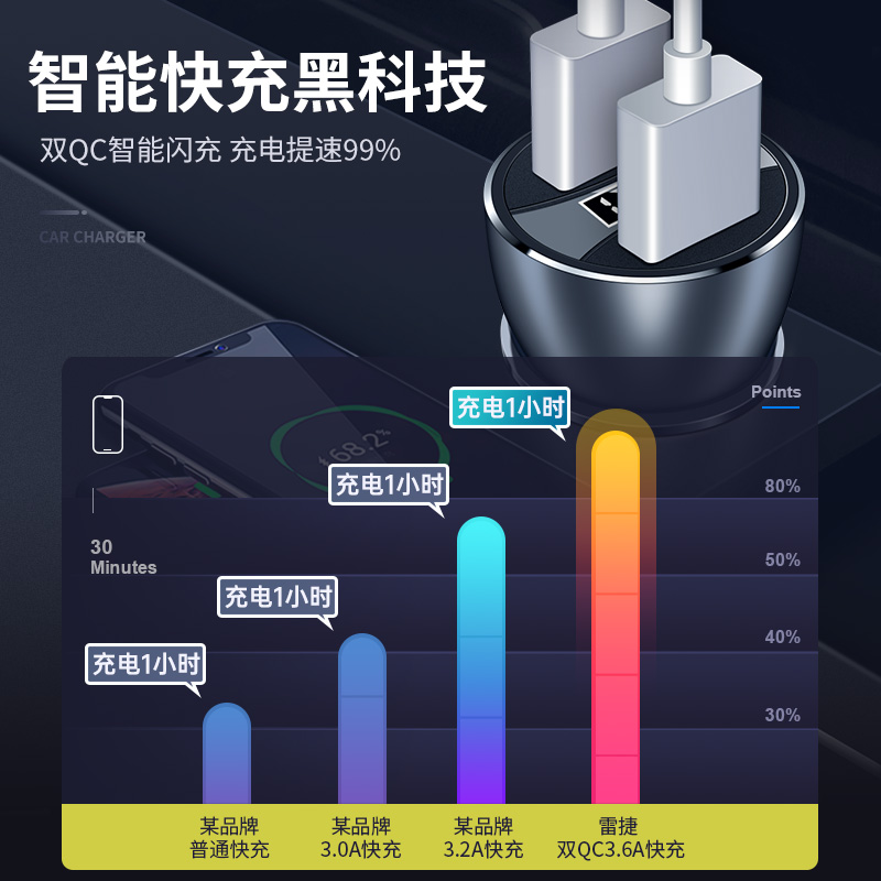 车载充电器手机超级快充点烟器一拖二转换插头快速车充插座汽车用