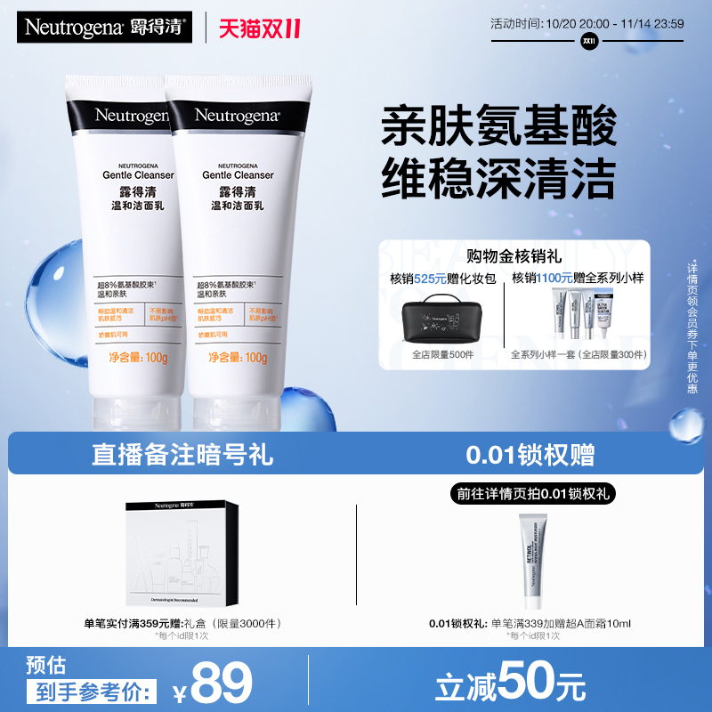 洗面奶洁面温和泡沫150ml男女敏感肌清爽 珂润保湿 双11预售