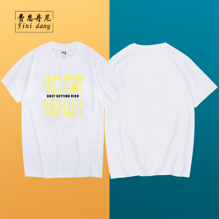 夏季 男衣服大码 t恤衫 忙着发财挣钱工作学习调侃趣味创意圆领短袖
