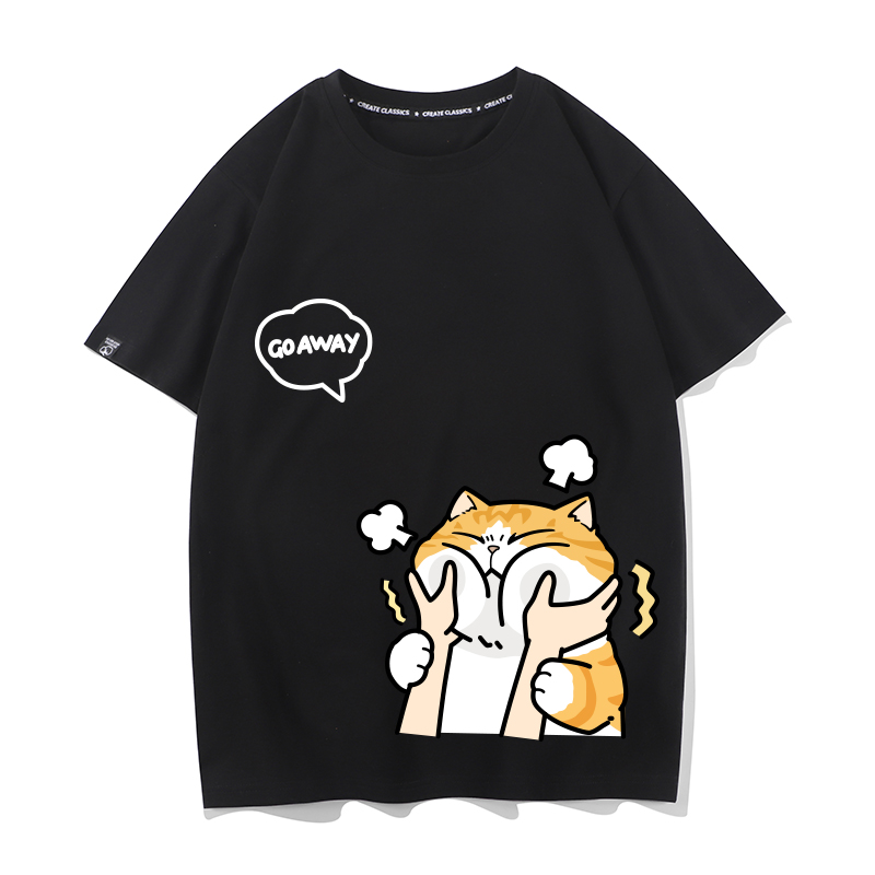 秀洛捏脸橘猫宽松短袖 TEE T恤男女情侣衣服卡通搞怪猫图案潮流半袖