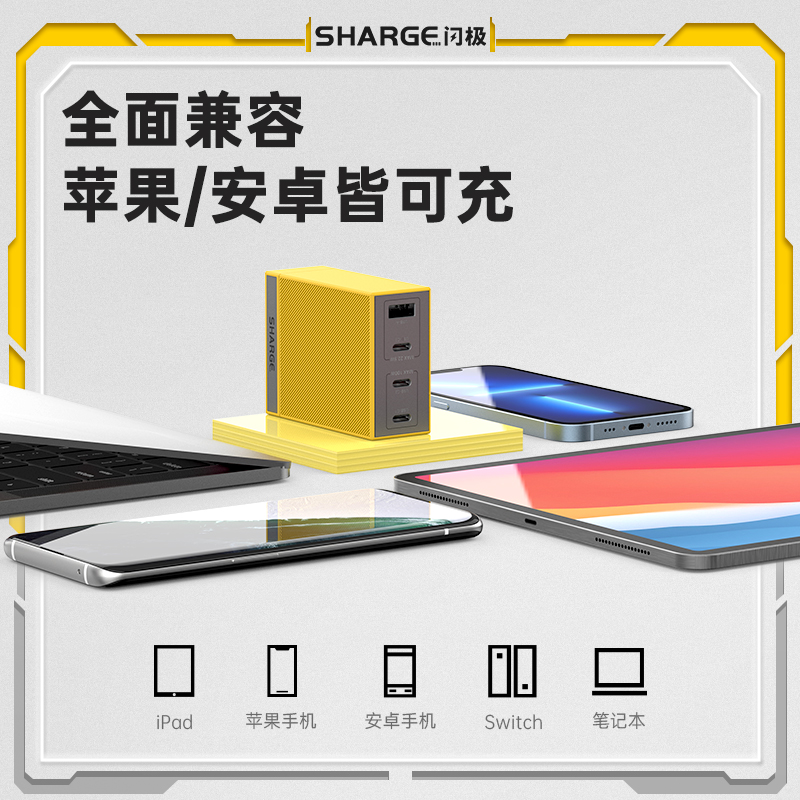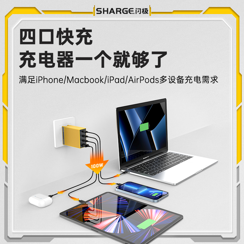 闪极100W氮化镓PD充电器3C1A多口GaN适用于iPhone17ProMax苹果16手机笔记本Macbook电脑iPad iPhone17上新